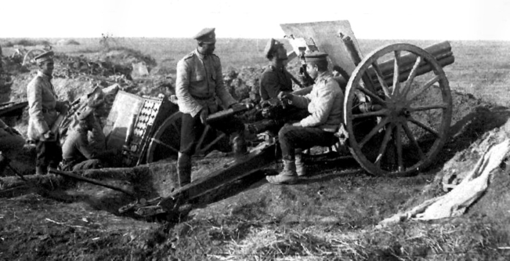 field gun, recoil system with hydraulic buffer and springs, swinging block