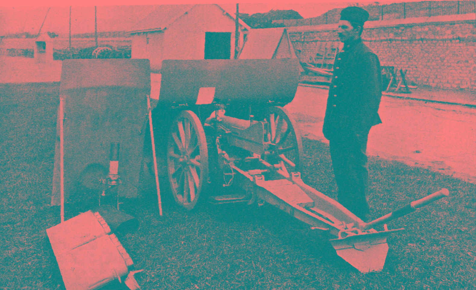 Portable ammunition shield, made by steel sheet of the French artillery type.